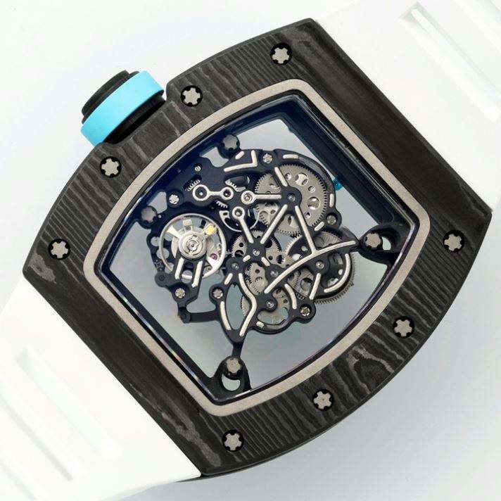 นาฬิกาข้อมือคาร์บอนไฟเบอร์ระดับพรีเมียม หน้าปัดแซฟไฟร์ กลไกที่มองเห็นได้ชัดเจน ดีไซน์สายยางยอดนิยม