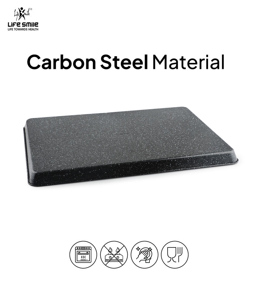 ถาดอบทรงสี่เหลี่ยมผืนผ้าเหล็กกล้าคาร์บอนพรีเมียม พร้อมเคลือบหินแกรนิตหลายชั้นแบบไม่ติดกระทะ ใช้กับเตาอบได้ กระจายความร้อนสม่ำเสมอ