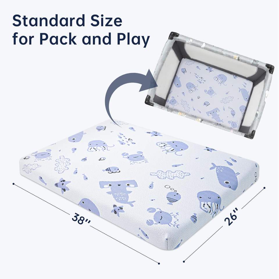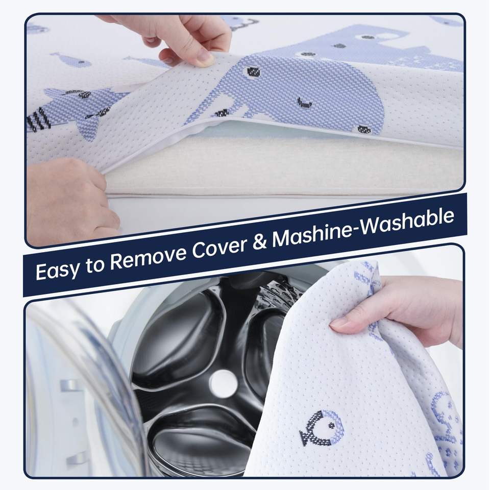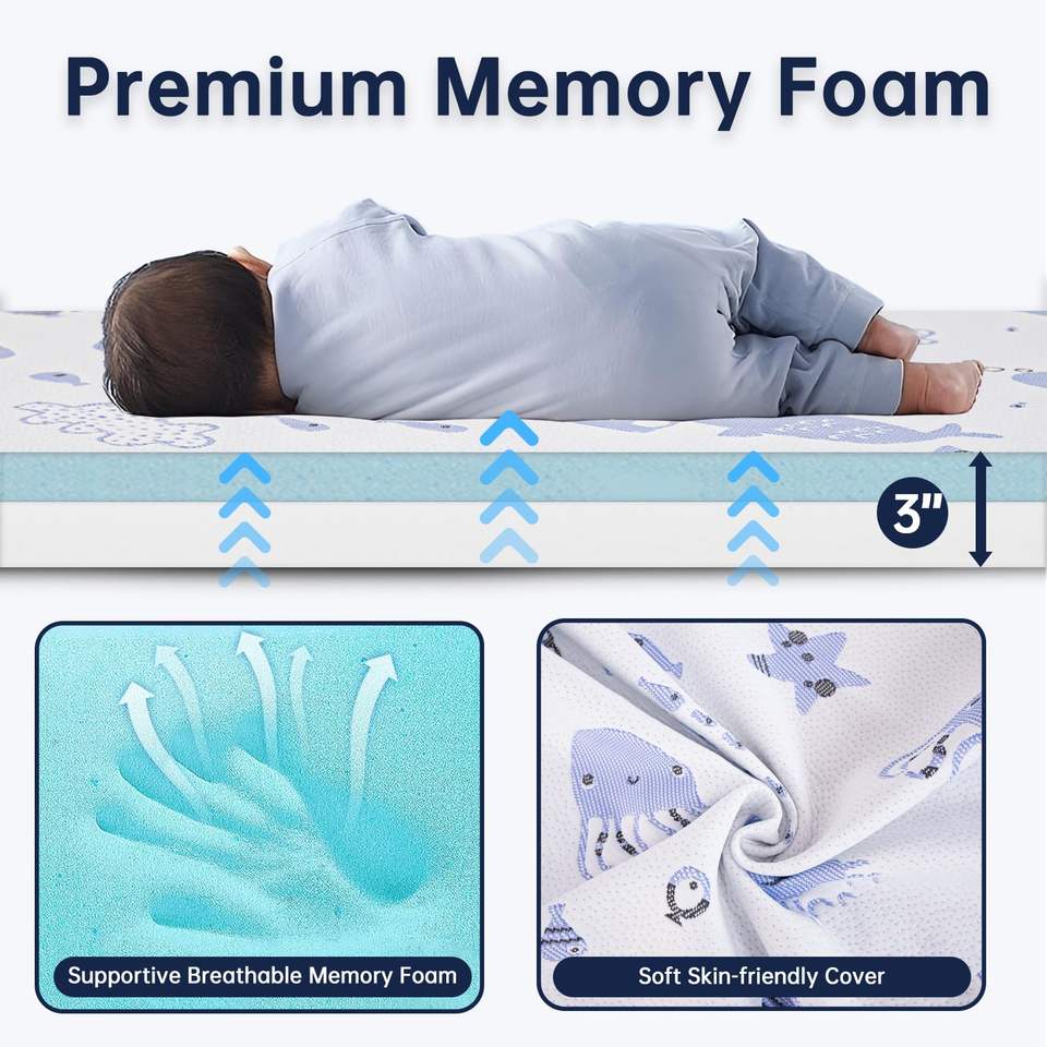 ที่นอนเด็กอ่อนแบบเจลสองด้านพรีเมียม พร้อมแผ่นรองนอนเมมโมรี่โฟม สำหรับเตียงเด็กเล็ก แบบพกพาได้