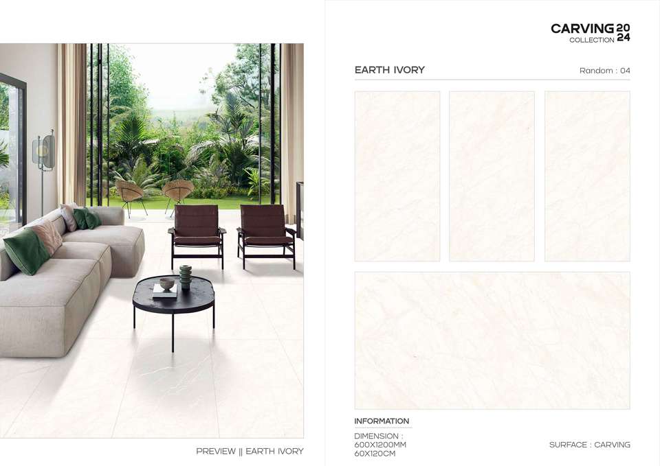 กระเบื้องพอร์ซเลนเคลือบเงาเนื้อแกะสลักคุณภาพพรีเมียม ขนาด 600x1200 มม. สำหรับตกแต่งพื้นและผนังขนาดใหญ่ สไตล์โมเดิร์น
