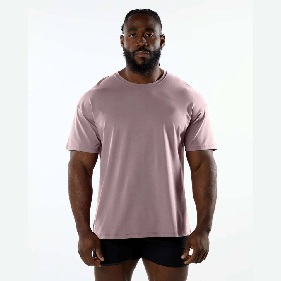 เสื้อยืดผู้ชายทรงหลวมสไตล์ลำลองสำหรับกิจกรรมกลางแจ้ง ผ้าฝ้าย 100% เป็นมิตรกับสิ่งแวดล้อม ระบายอากาศดี ขายส่ง/OEM