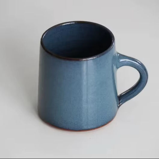 แก้วกาแฟเซรามิคพรีเมียมเคลือบสีน้ำเงินเหล็ก ดีไซน์โค้งมน จับถนัดมือ เก็บความร้อนได้ดี เหมาะสำหรับชุดอาหารสมัยใหม่