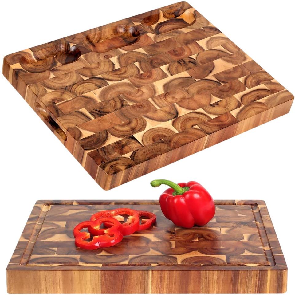 เขียงไม้ลายตารางหมากรุกแบบพรีเมียมเขียงไม้เนื้อแข็งเป็นมิตรกับสิ่งแวดล้อมใช้กับเครื่องล้างจานปลอดภัยสำหรับใช้ในบ้านและในครัว