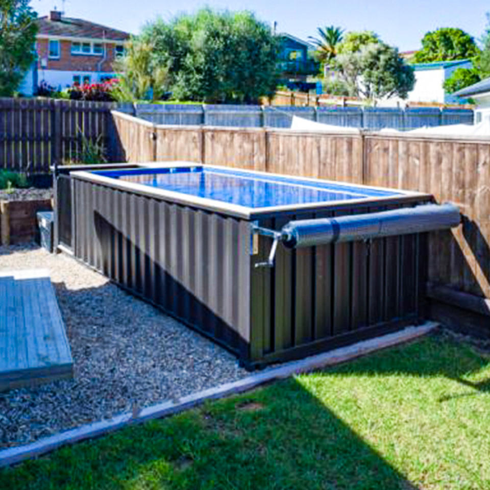 ผู้จัดจำหน่ายระดับพรีเมียมจากจีน สระว่ายน้ำสำหรับครอบครัวในตู้คอนเทนเนอร์ขนส่งขนาด 45 ฟุต 25 ฟุต พร้อมกระจกแบบผสมผสาน ปรับแต่งสีได้
