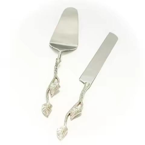 ชุดอุปกรณ์ตัดเค้กโลหะพรีเมียมพร้อมด้ามจับตกแต่งสวยงาม มีดตัดพายสำหรับงานแต่งงาน ช้อนตักขนมหวาน อุปกรณ์บนโต๊ะอาหาร