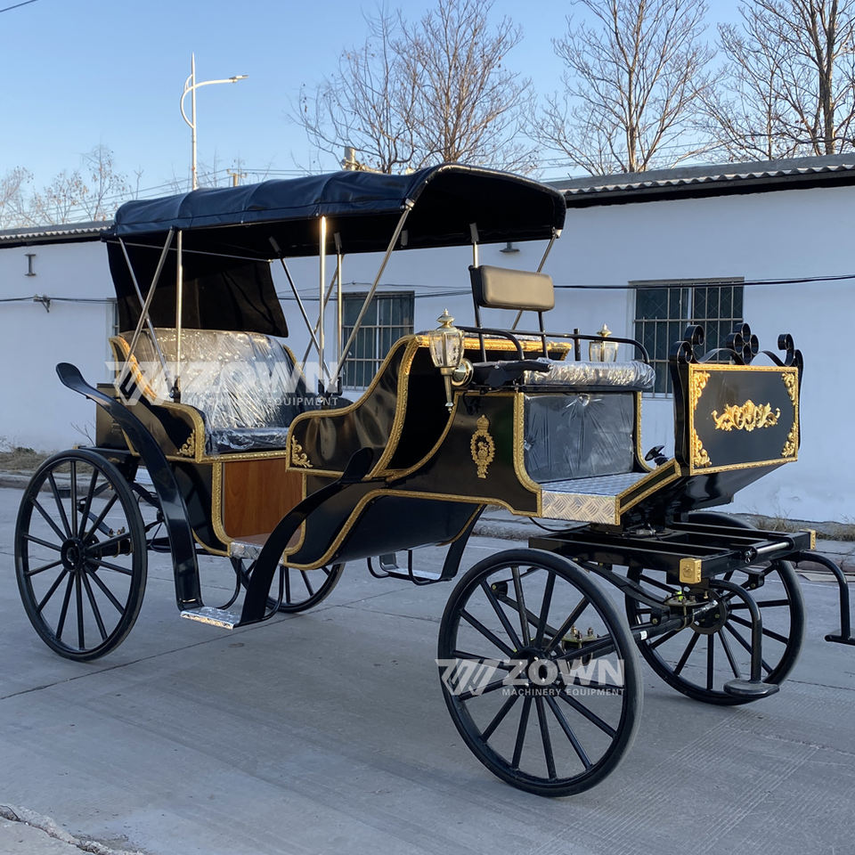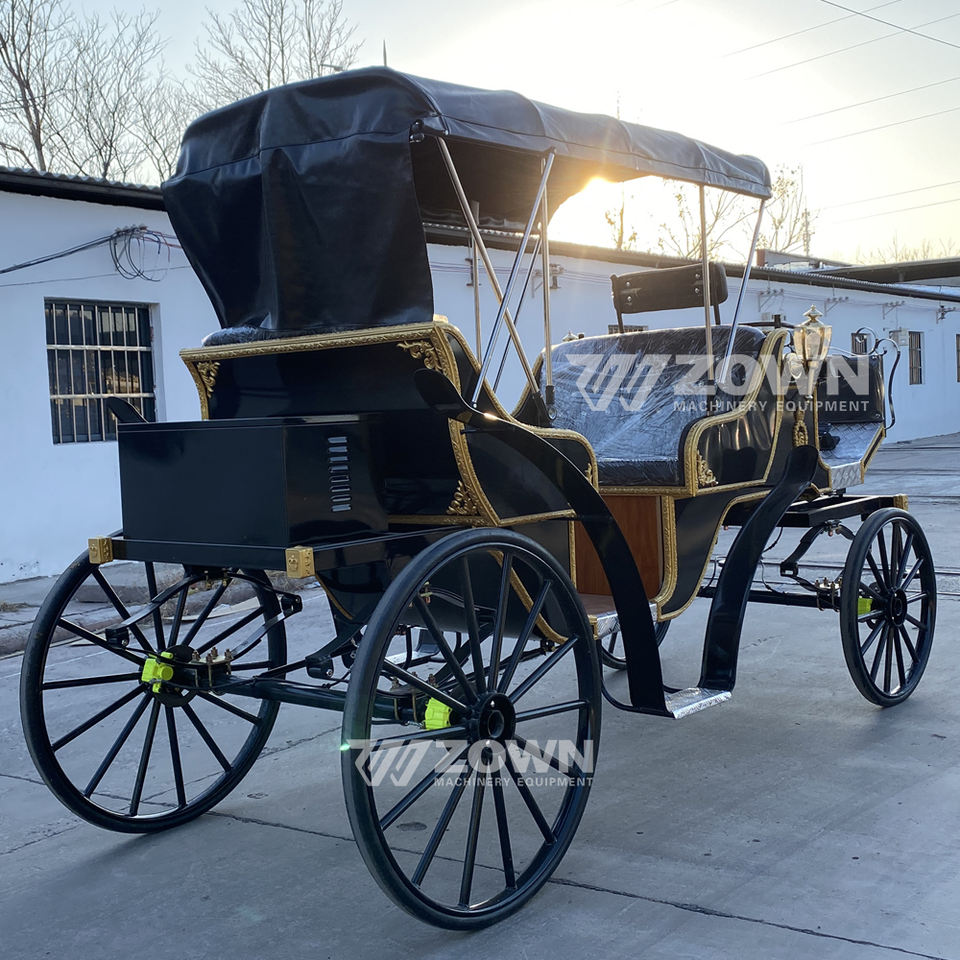 รถม้าไฟฟ้ารถลากสำหรับท่องเที่ยวสีดำคลาสสิกแบบคลาสสิกรถเข็นม้าแบบยุโรป