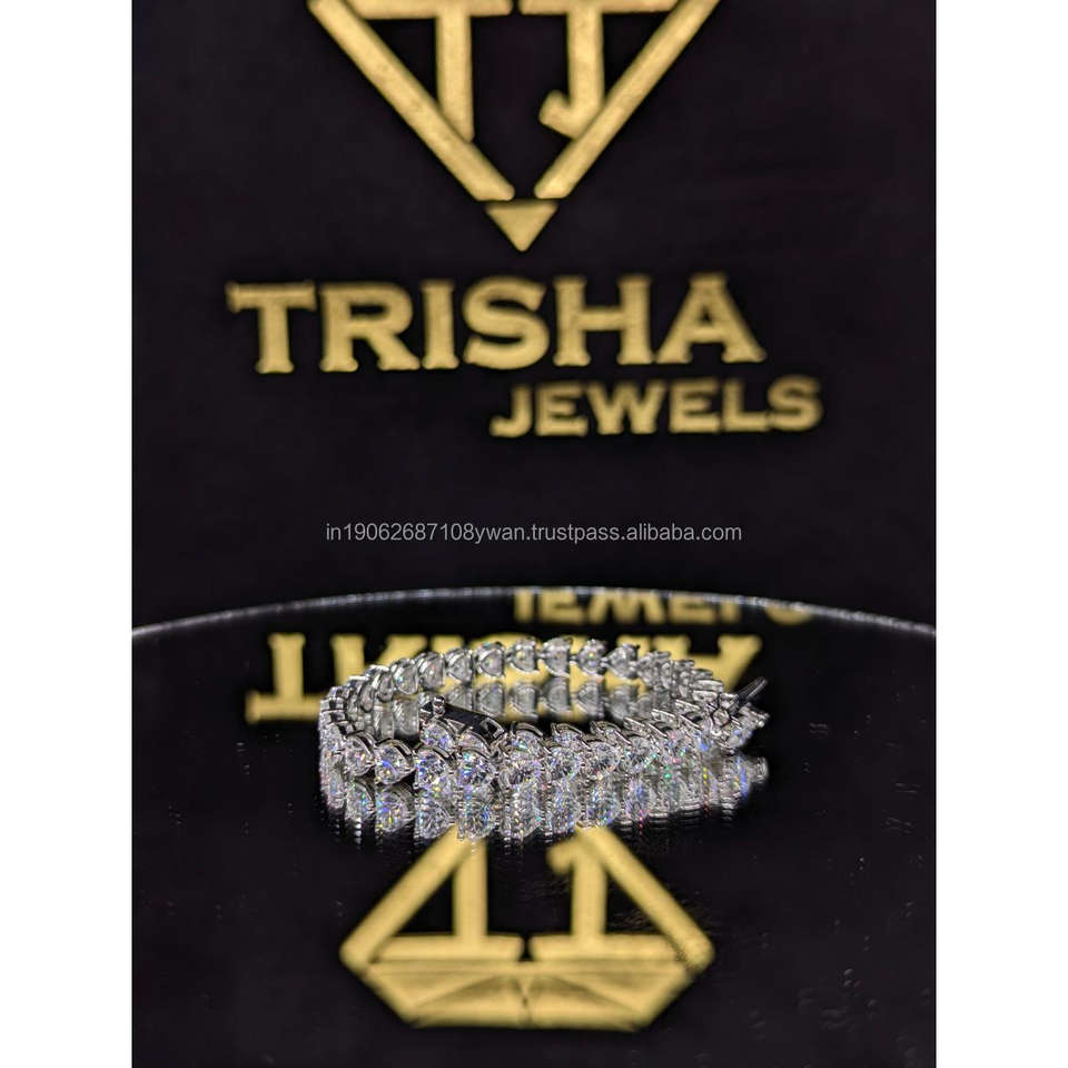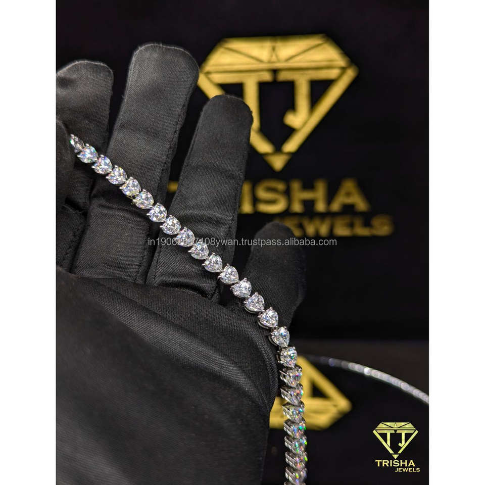 สร้อยข้อมือเทนนิสเพชรโมอิสซาไนต์ทรงคลาสสิคพรีเมียมแบบหัวใจ VVS เงินแท้ 925 เครื่องประดับฮิปฮอป โดย Trisha Jewels