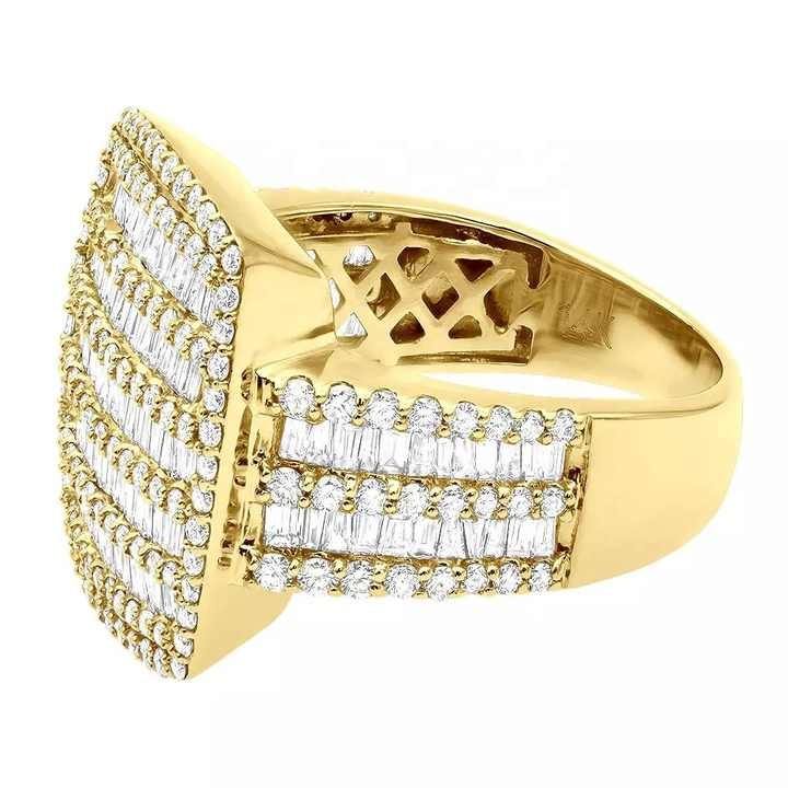 พรีเมี่ยมคลาสสิก cuban Link Ring 925แข็งสีเงินสดใสตัด VVS Moissanite การตั้งค่าที่มองไม่เห็นคำสั่งฮิปฮอป IGI