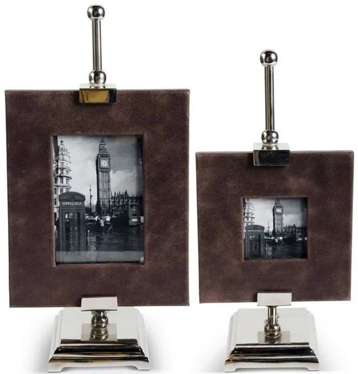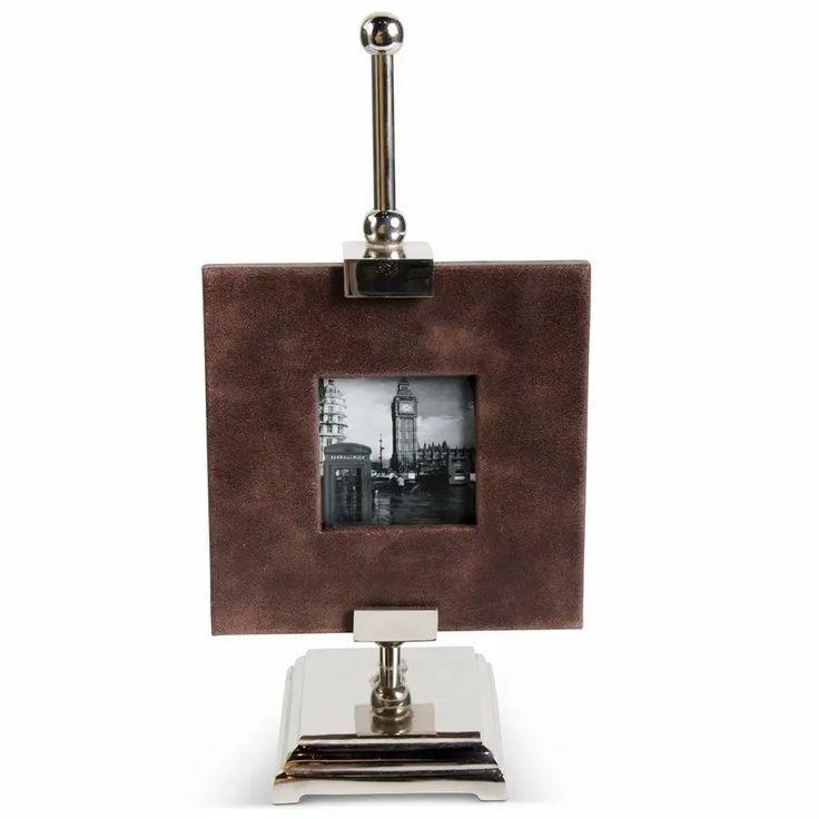 กรอบรูปหนังสีน้ำตาลสุดหรูหราพร้อมขาตั้งโลหะขัดเงาสำหรับตกแต่งโต๊ะในห้องนั่งเล่นอย่างมีระดับ