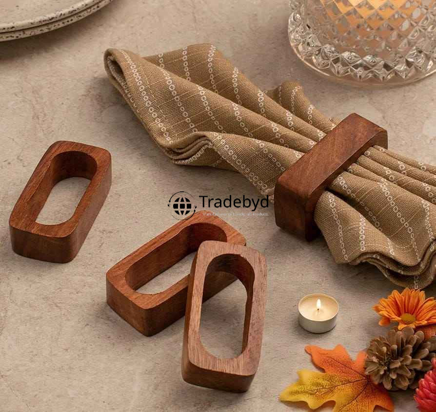 แหวนผ้าเช็ดปากงานแต่งงานไม้คลาสสิกระดับพรีเมียม ทนทาน เป็นมิตรกับสิ่งแวดล้อม อุปกรณ์ตกแต่งโต๊ะอาหารสุดหรู Tradebyd