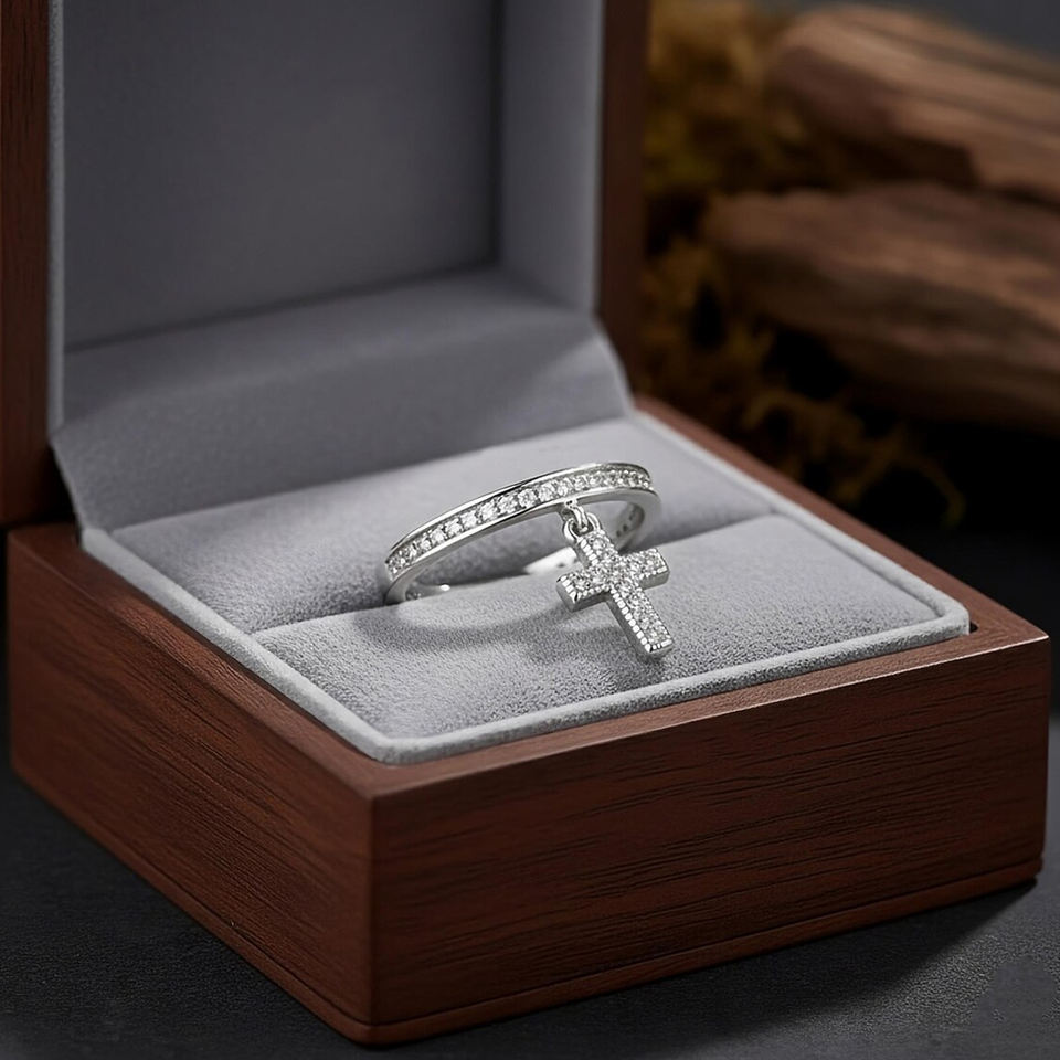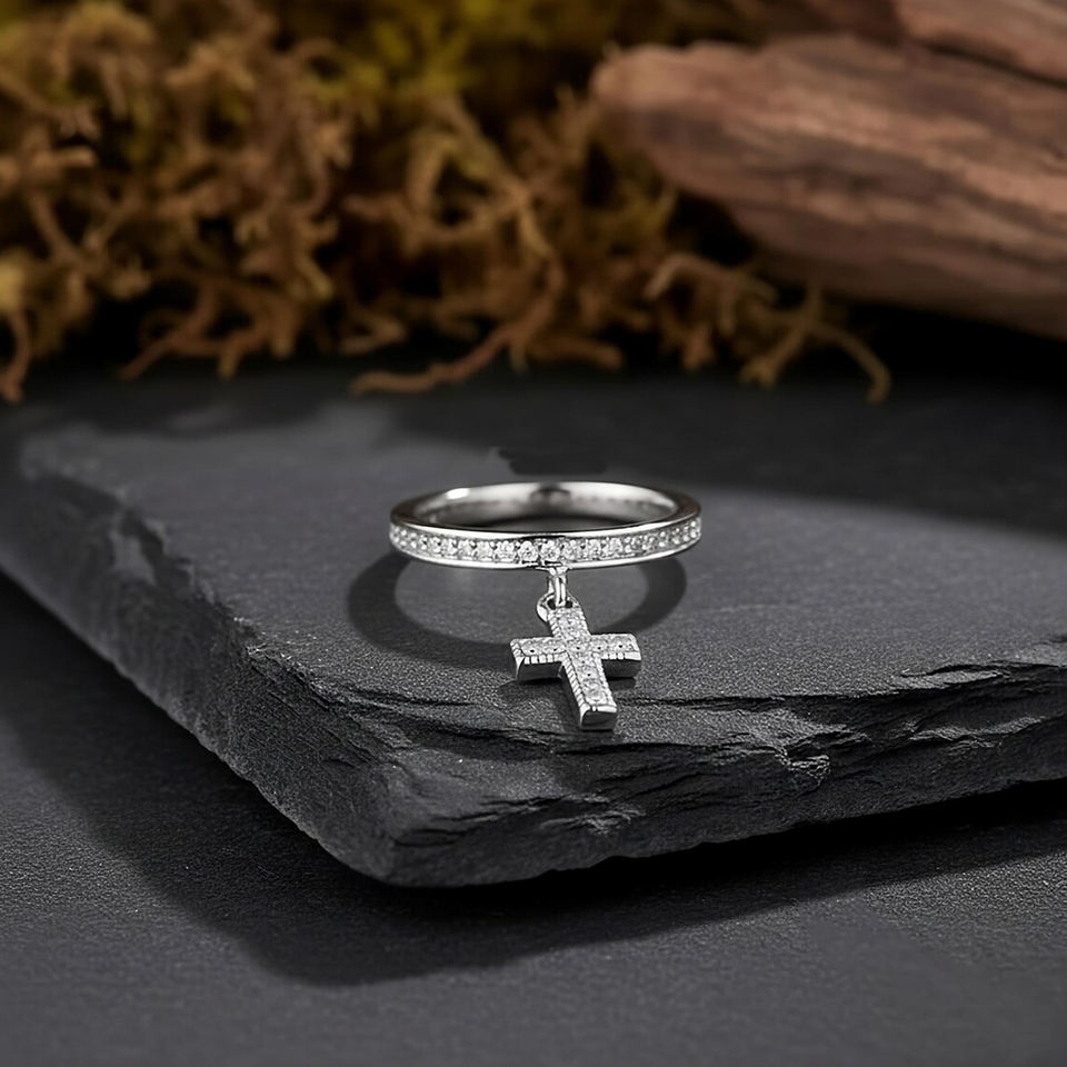 Premium Collection Cubic Zirconia Dangle Cross Eternity Ring Round Wedding Band 925 Sterling Silver Anniversary Wedding Jewelry