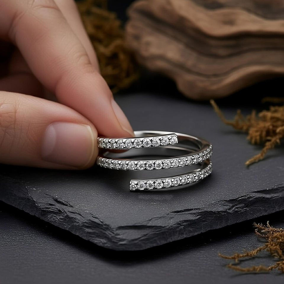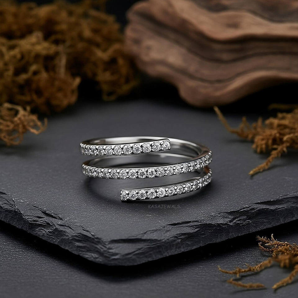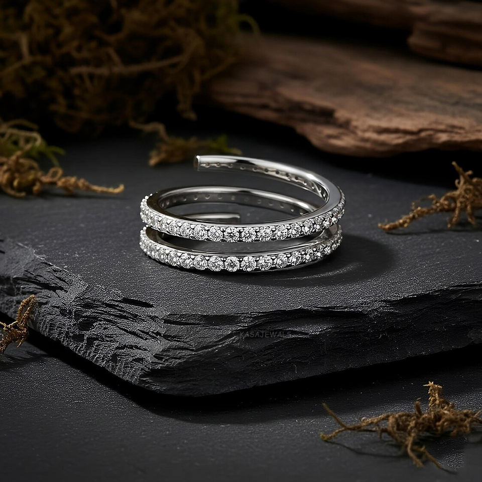 แหวนคิวบิกเซอร์โคเนียแบบพันสองแถว คอลเลคชั่นพรีเมียม เงินแท้ 925 สำหรับงานหมั้น งานแต่งงาน งานเลี้ยง ของขวัญเครื่องประดับชั้นดี