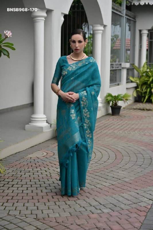 ผู้จัดจำหน่ายผ้าซารีพร้อมเสื้อคลุม คอลเลคชั่นพรีเมียม ผ้าปอกระเจา ผ้าลินิน ผ้าไหม พร้อมลายปักดิ้นทองแบบบัตติส-ปาลลู และขอบผ้าปักดิ้นทองสองชั้น จากอินเดีย