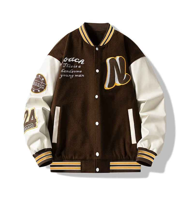 เสื้อแจ็กเก็ตเบสบอลวิทยาลัยแบบพรีเมี่ยมสำหรับผู้ชายเสื้อแจ็กเก็ตปักลายมีสไตล์