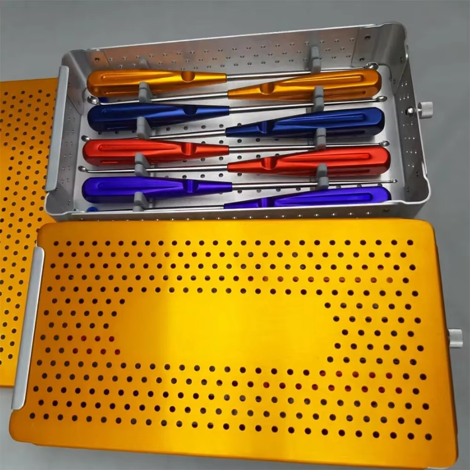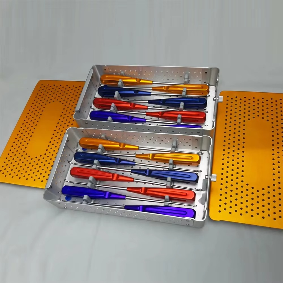 ชุดเครื่องมือผ่าตัดกระดูกต้นคอแบบมีสีระบุ (8 ชิ้น) - สแตนเลสสตีล | ชุดอุปกรณ์ผ่าตัดกระดูกสันหลังแบบใช้ซ้ำได้และฆ่าเชื้อได้ด้วยหม้อนึ่งความดันสูง