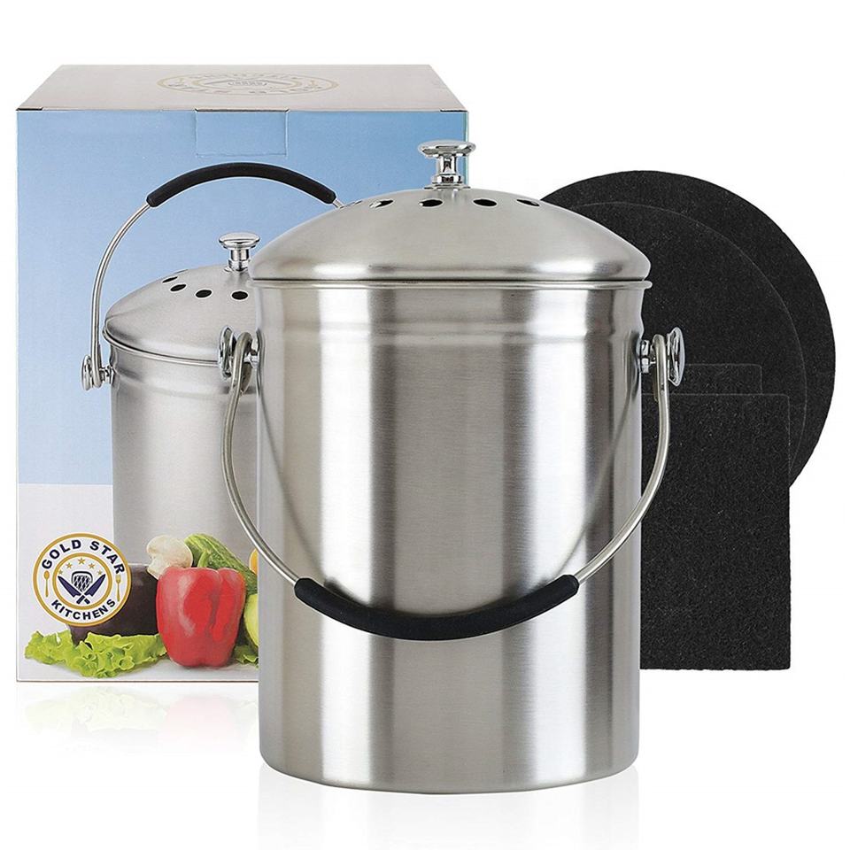 Premium Compost Bin for Kitchen Worktop, Stainless Steel Compost Bin for Kitchen Food Waste