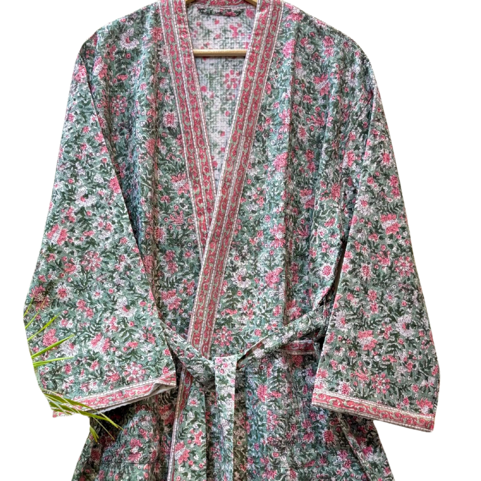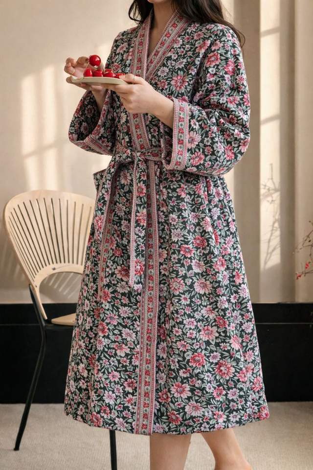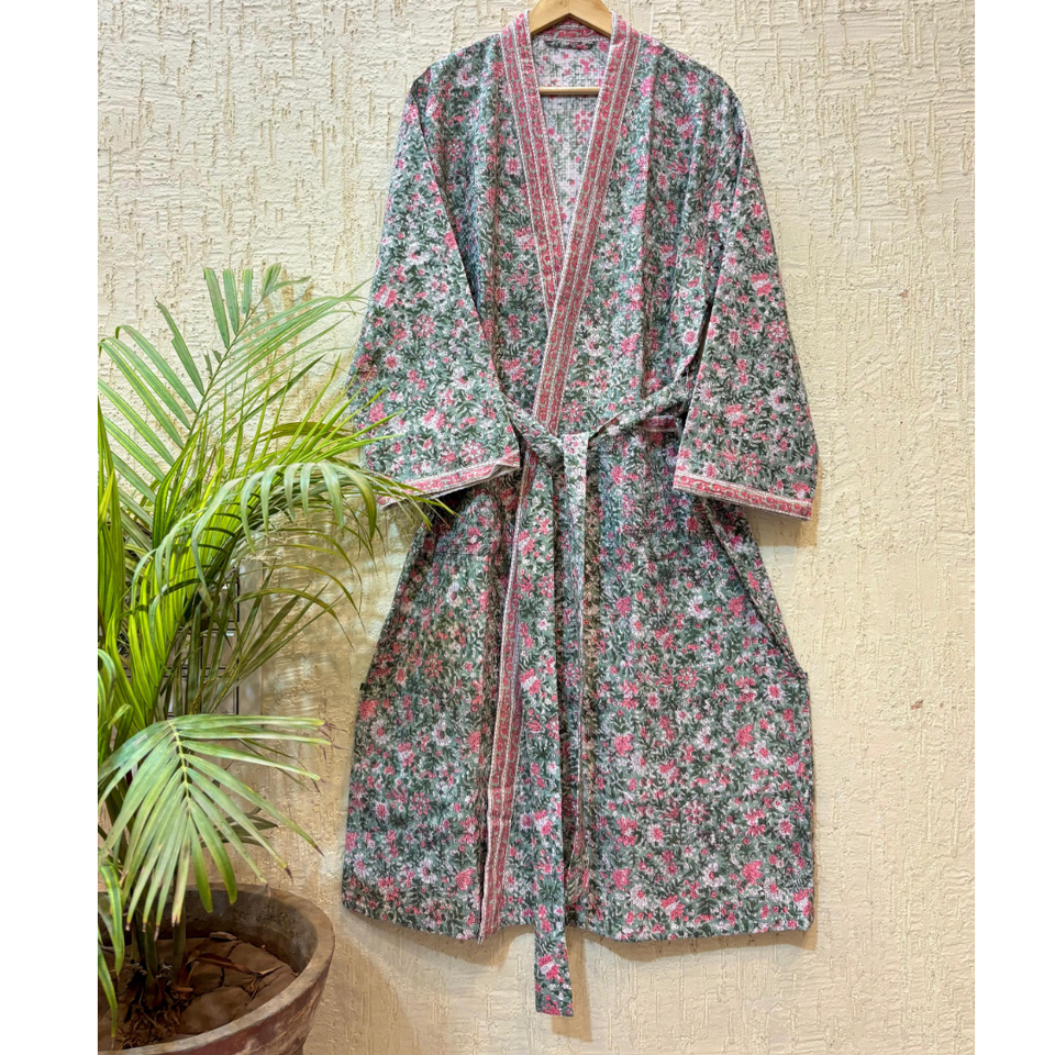 ชุดคลุมอาบน้ำผ้าฝ้าย 100% สำหรับผู้หญิง ลายดอกพิมพ์แบบวาฟเฟิล พรีเมียม แห้งเร็ว เป็นมิตรกับสิ่งแวดล้อม