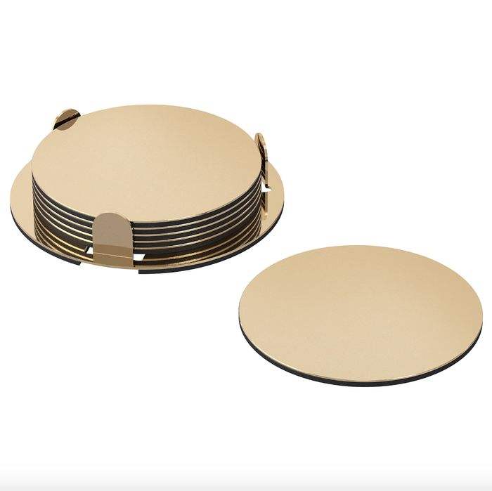 ชุดจานรองแก้วโลหะพรีเมียมสไตล์ร่วมสมัย พร้อมถาดและที่วางแบบใช้ซ้ำได้ เพื่อการปกป้องพื้นผิวโต๊ะอย่างมีสไตล์และการรับประทานอาหาร