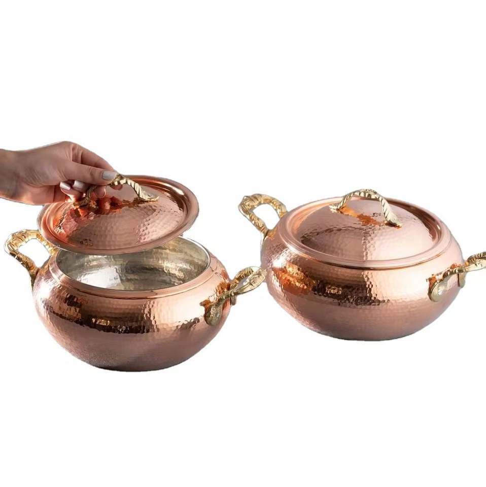 หม้อตุ๋นทองแดงพรีเมียมพร้อมฝาปิด หูจับทองเหลือง อุปกรณ์เสิร์ฟบุฟเฟ่ต์สุดหรู สำหรับโรงแรมและงานจัดเลี้ยง