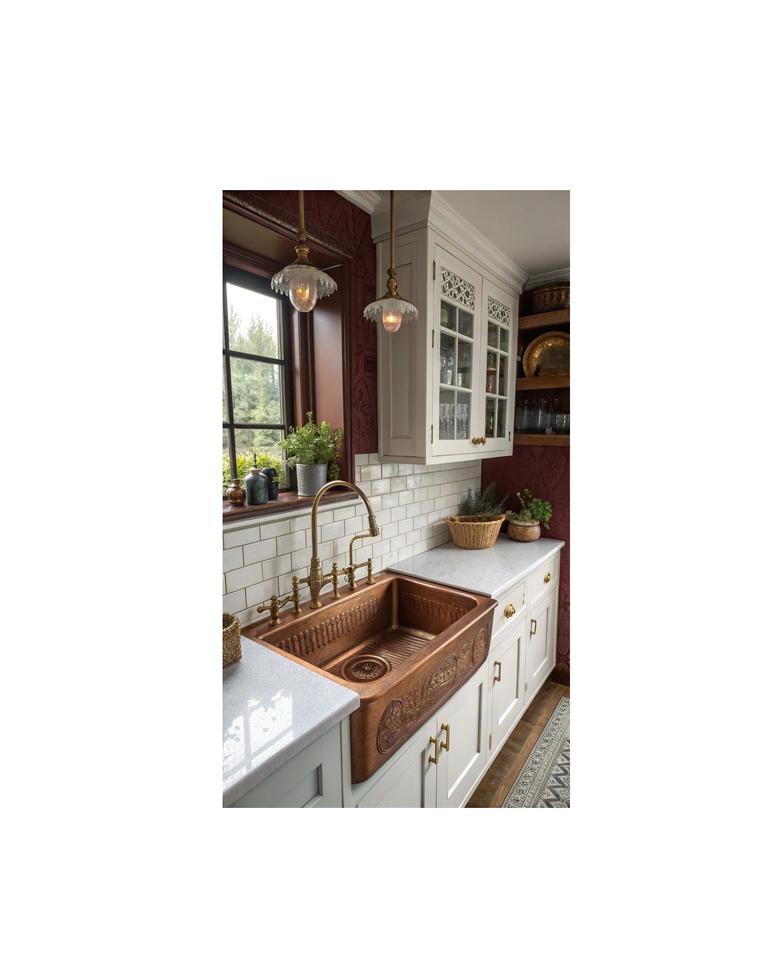 อ่างล้างจานทองแดงพรีเมียม ดีไซน์ทันสมัย ปรับแต่งได้ ทนทาน พื้นผิวโลหะแบบตอก สำหรับการใช้งานหนักในชีวิตประจำวัน