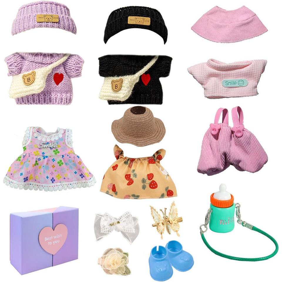 Premium Cotton 17cm Fashion Doll Clothes Set 5-Pack Handmade Outfits & Accessories 6.7\" Premium Cotton Clothing for Dolls