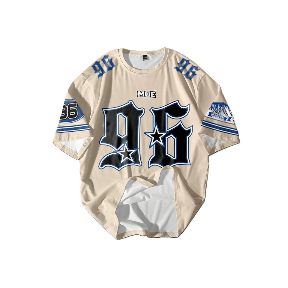 เสื้อเจอร์ซีย์อเมริกันฟุตบอลสไตล์สตรีท ผ้าคอตตอนผสมพรีเมียม สกรีนโลโก้และหมายเลขได้ตามต้องการ ทรงโอเวอร์ไซส์ ชุดทีม ผลิตแบบ OEM จำนวนมาก