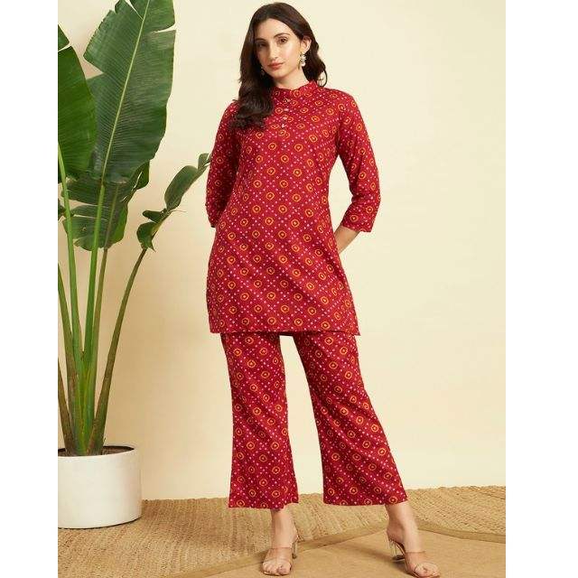 ชุดคุर्ติผ้าฝ้ายพรีเมียมลายดอกไม้ แขนสั้น ผ่าข้าง สำหรับฤดูร้อน พร้อมกางเกงปาลาซโซ สำหรับผู้หญิง | ผ้าที่ระบายอากาศได้ดี | เสื้อผ้าลำลองสไตล์ชาติพันธุ์แบบติดกระดุมสำหรับใส่ในชีวิตประจำวัน