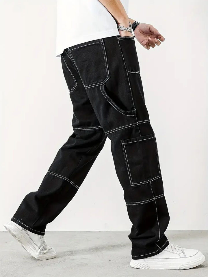 กางเกงผ้าฝ้ายพรีเมี่ยมสำหรับบุรุษ: ดีไซน์คาร์โก้ในเมืองมีหลายกระเป๋ากางเกงสำหรับผู้ชายที่ไม่ยับ