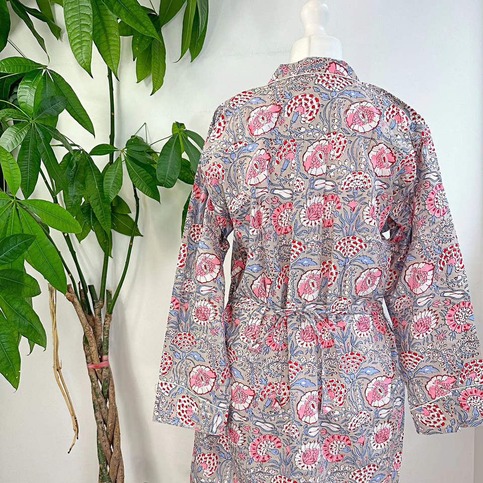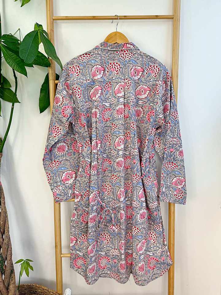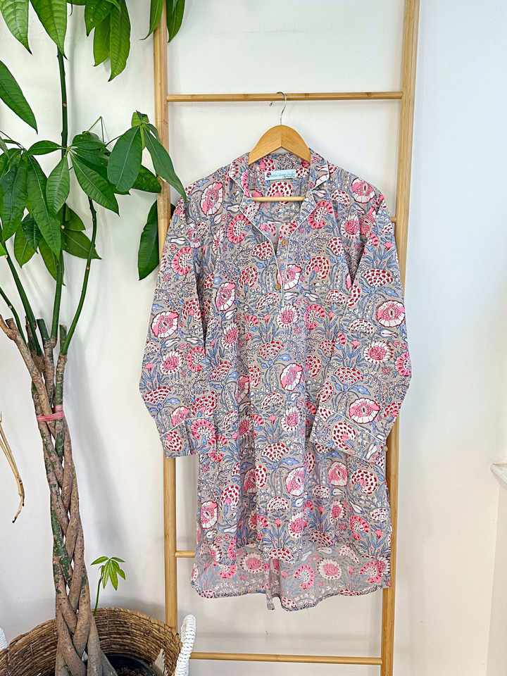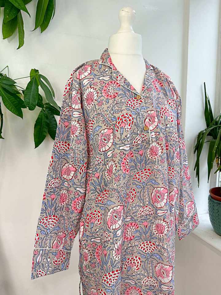 เซ็ตชุดนอนผ้าฝ้ายแบบพรีเมี่ยมสำหรับผู้หญิงชุดใส่กลางคืนลายดอกไม้เนื้อผ้านุ่มพิเศษดีไซน์กระดุมยาวสวมใส่สบาย