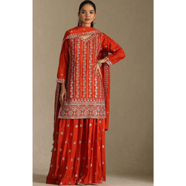 ชุดชาราร่าผ้าฝ้ายพรีเมียมสีแดงสำหรับเด็กผู้หญิง | ชุดงานรื่นเริงและงานแต่งงานแบบดั้งเดิมพร้อมผ้าคลุมไหล่