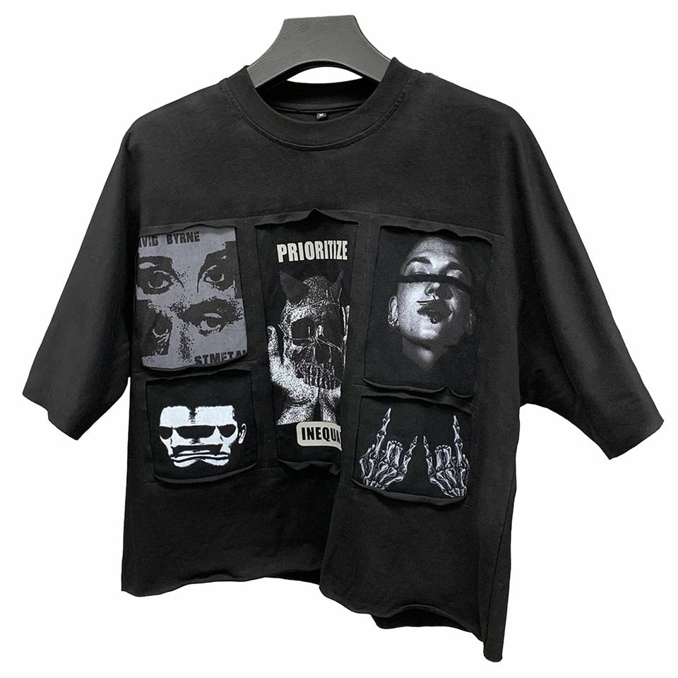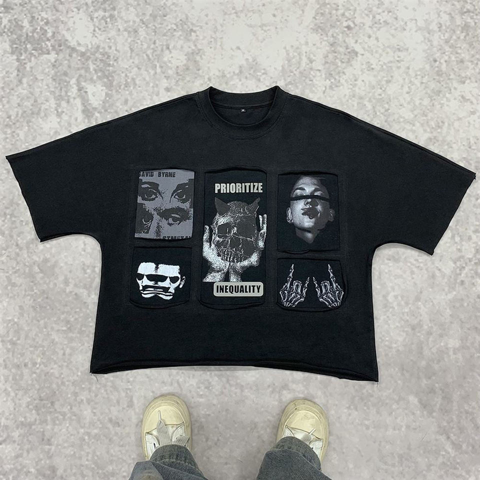 เสื้อยืดโอเวอร์ไซส์ผ้าฝ้ายพรีเมียมสไตล์สตรีทแวร์ลายปะติดสำหรับผู้ชาย ผู้ผลิตเสื้อยืดดีไซน์เนอร์คุณภาพสูงพร้อมโลโก้สั่งทำ