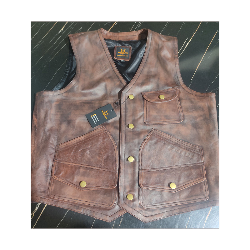 เสื้อกั๊กหนังแท้แบบพรีเมี่ยมสำหรับผู้ชายเสื้อแจ็กเก็ตหนังแท้แบบฮิปฮอป