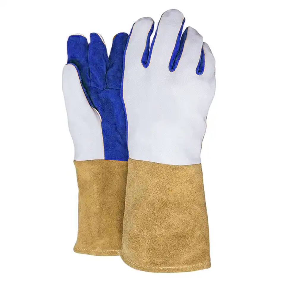 ถุงมือทำงานหนังวัวคุณภาพพรีเมียม ทนทาน สวมใส่สบาย ฝ่ามือบุผ้าฝ้ายนุ่ม ระบายอากาศได้ดี ป้องกันการสั่นสะเทือน ป้องกันไฟฟ้าสถิต พร้อมปลอกข้อมือเพื่อความปลอดภัย