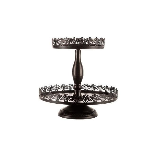 ชั้นวางเค้กโลหะสองชั้นคุณภาพพรีเมียม พร้อมวงแหวนตกแต่งด้านบน สำหรับงานเลี้ยงน้ำชาและงานแต่งงาน