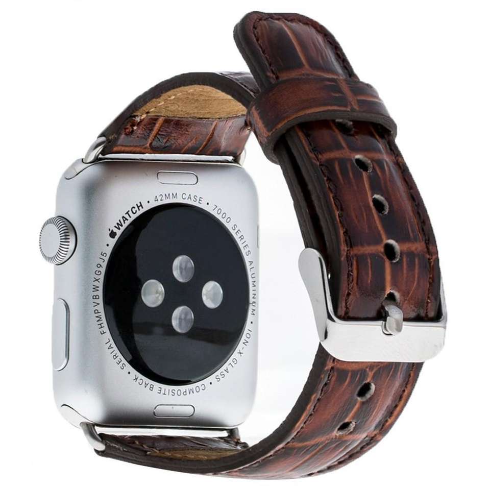Croco สายนาฬิกาหนังแท้สีน้ำตาลสำหรับ Apple Watch สำหรับ Samsung Galaxy สมาร์ทวอทช์ออกแบบโลโก้ได้ตามต้องการ