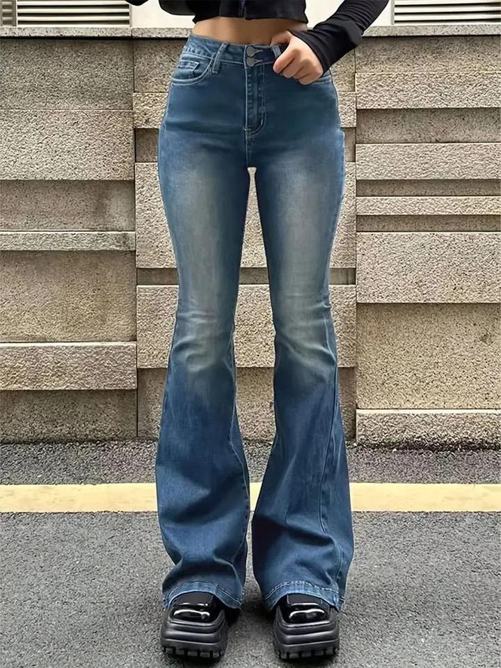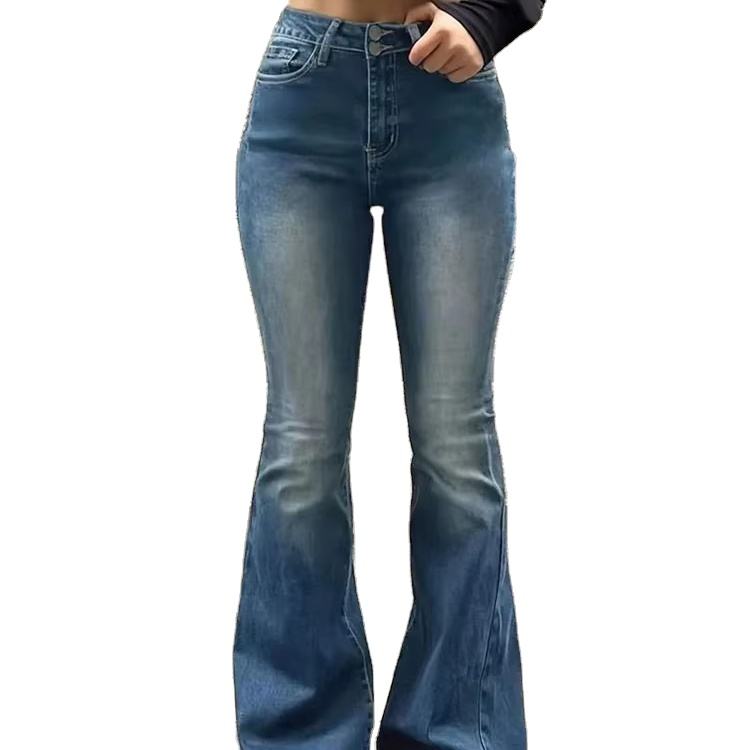 กางเกงยีนส์ขาบานสำหรับผู้หญิงกางเกงขาบานแบบลำลอง2025ผ้าเดนิม100% ใหม่