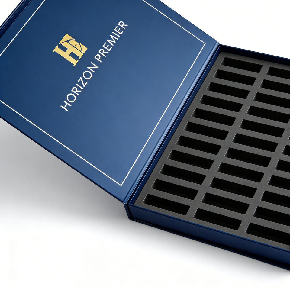 กล่องบรรจุภัณฑ์เครื่องสำอางแบบพรีเมียมสั่งทำพิเศษ กล่องโชว์ผลิตภัณฑ์บำรุงผิว พร้อมช่องใส่ของ โลโก้สั่งทำได้ โรงงานรับผลิตแบบ OEM ODM