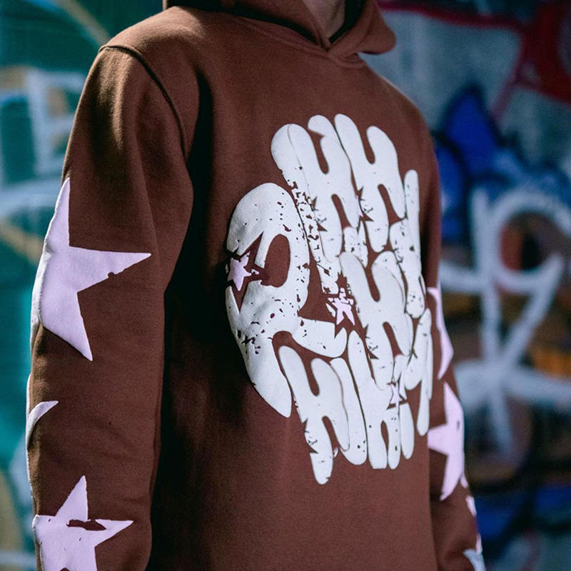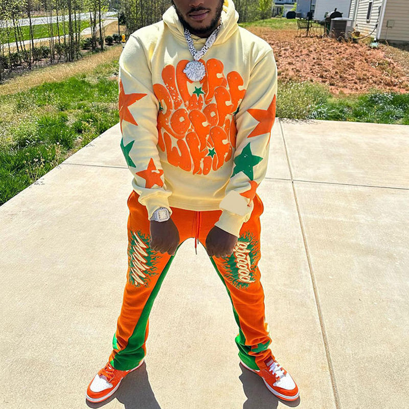 ชุดวอร์มทรงหลวมสำหรับผู้ชายเสื้อฮู้ดกีฬาแบบลำลองแนวสตรีทสูงกางเกงวอร์มทรงหลวมดีไซน์ตามสั่ง