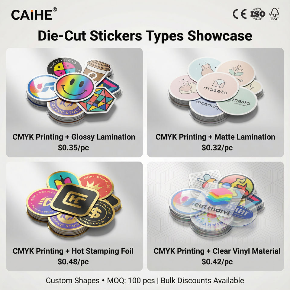 สติกเกอร์ไดคัทแบบพรีเมียม (วงกลม, วงรี, รูปตัวอักษร, รูปทรงอิสระ) ขั้นต่ำ 100 ชิ้น, ส่วนลดสำหรับการสั่งซื้อจำนวนมากสำหรับการสร้างแบรนด์