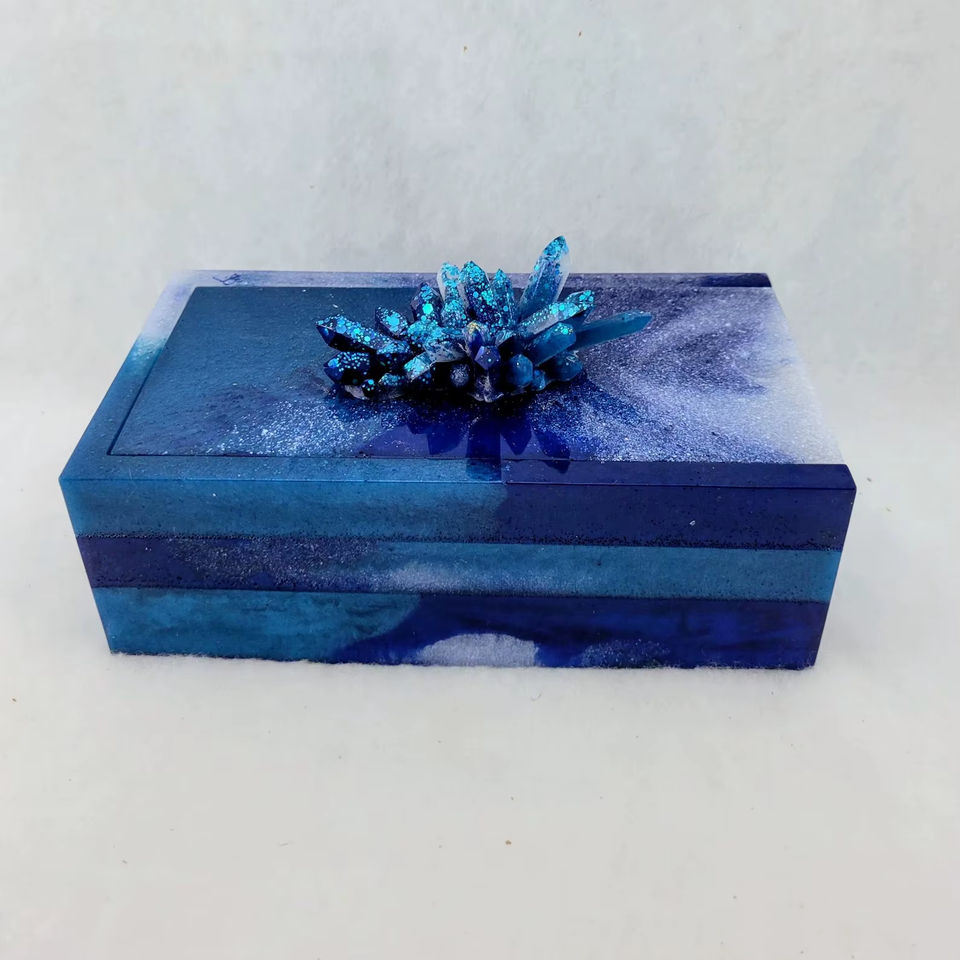 กล่องเครื่องประดับเรซิ่นลายดอกไม้ทำมือแบบพรีเมียม กล่องเก็บของตกแต่งทันสมัย เหมาะสำหรับห้องนั่งเล่น ตู้เสื้อผ้า ของขวัญ