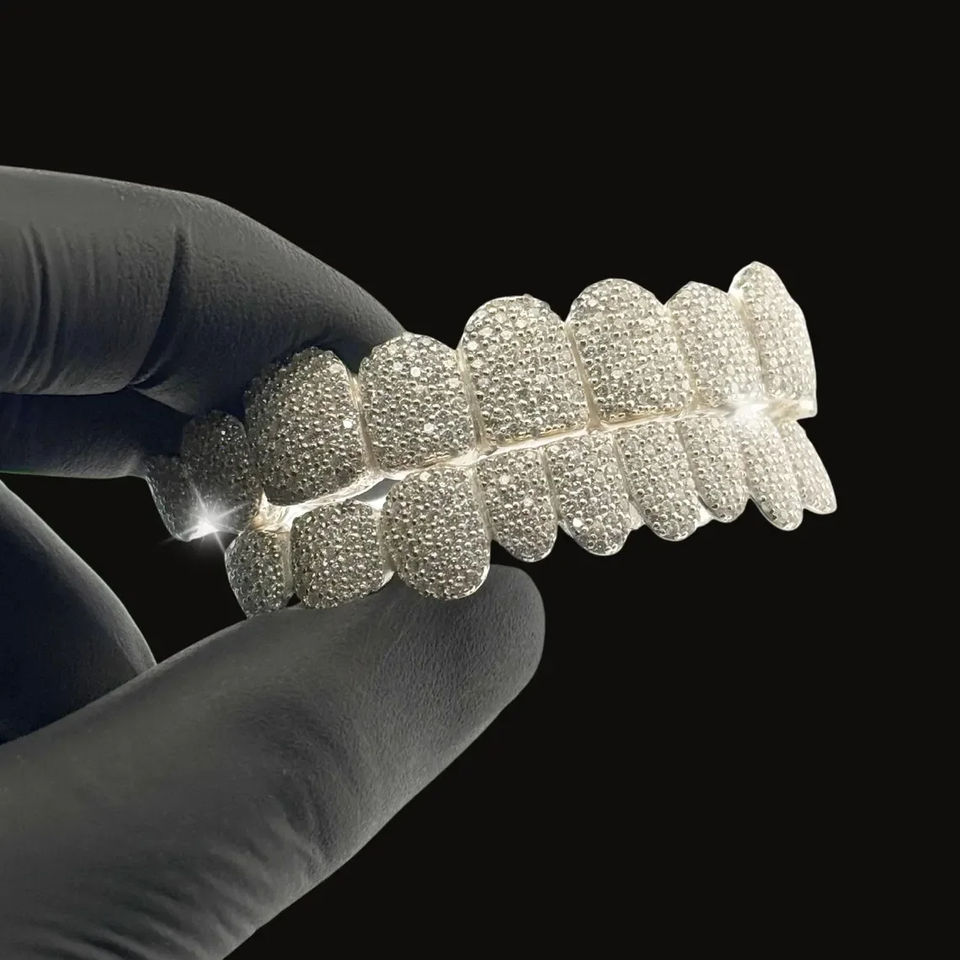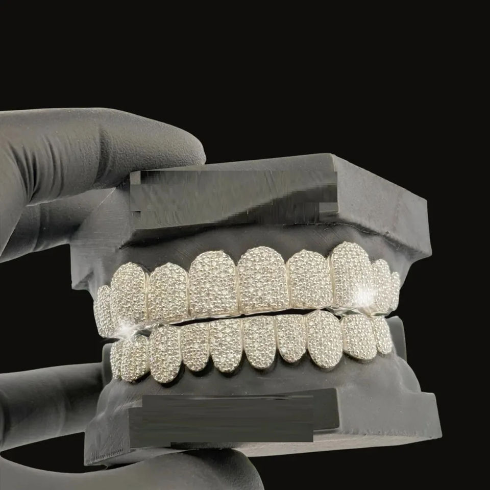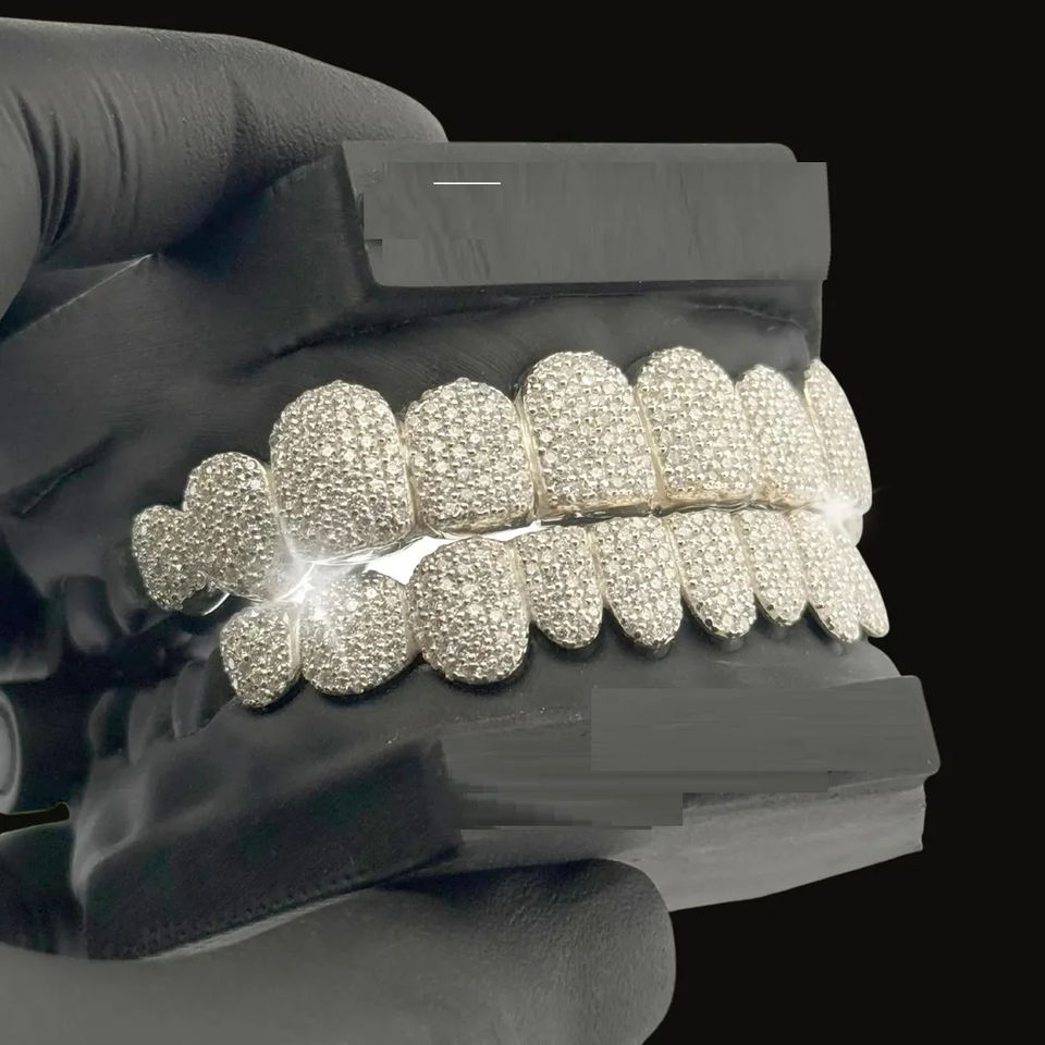กริลล์ซแบบรังผึ้งพรีเมียมสั่งทำพิเศษ เงินแท้ S925 ประดับเพชรโมอิสซาไนต์ VVS ทรงเหลี่ยมเพชร ของขวัญส่วนตัวสำหรับเขา