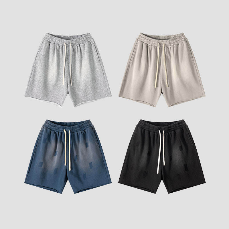 กางเกงขาสั้นผู้ชายไซส์พลัส พรีเมียม สกรีนโลโก้ตามสั่ง ผ้าคอตตอนผสมโพลีเอสเตอร์ 300GSM ล้างสีแบบวินเทจ ระบายอากาศได้ดี มีเชือกผูกเอว แบบยูนิเซ็กส์