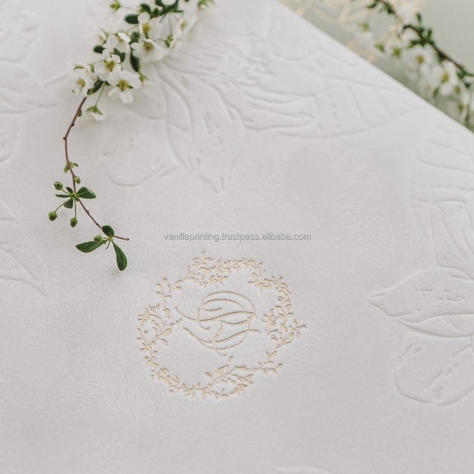 การ์ดเชิญลายนูนสีทองฟอยล์แบบ3D พิมพ์ออฟเซ็ตโลโก้แบบกำหนดเองสำหรับพรีเมี่ยมบนกระดาษผ้าฝ้ายแฟนซี