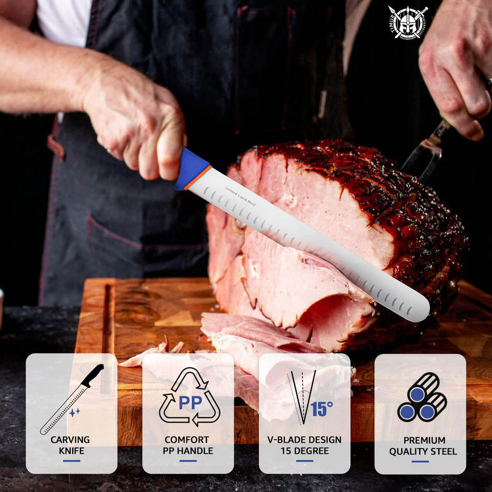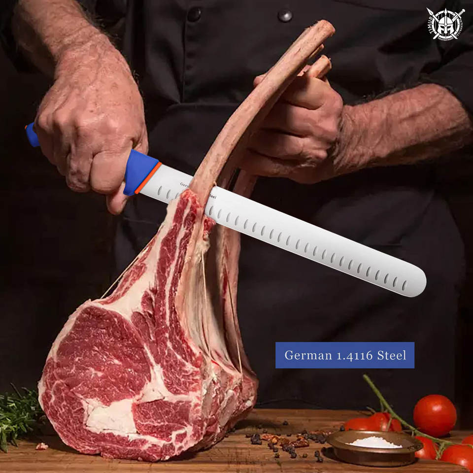 มีดหั่นเนื้อด้ามไม้ทำจากสเตนเลสเป็นมิตรต่อสิ่งแวดล้อมใช้ในการตัดเนื้อบาร์บีคิวกลางแจ้งปลอดภัยในระดับพรีเมียม