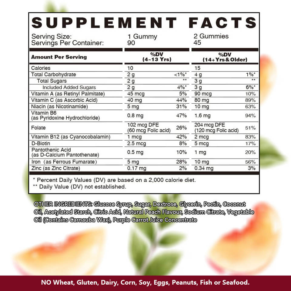 Main Ingredient:Vitamin B6, Vitamin C, Niacin, Vitamin A, Folate, Vitamin B12, D-Biotin, Pantothenic Acid, Iron, Zinc