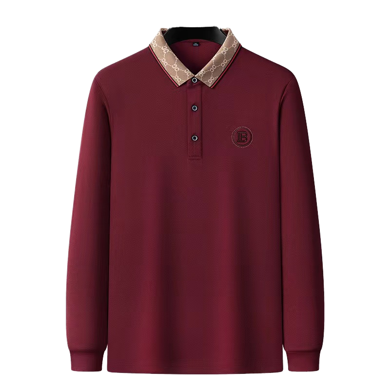 เสื้อเชิ้ตแขนยาวลำลองสำหรับผู้ชายสีพื้นปักลายผ้าถักแบบแห้งเร็วด้านหน้าสำหรับไปโรงเรียน