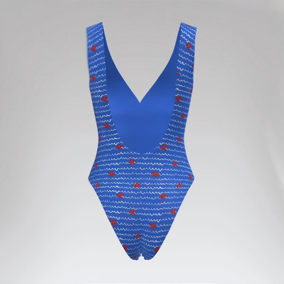 ชุดว่ายน้ำวันพีซแบบพรีเมียมสั่งทำพิเศษ พร้อมคุณสมบัติควบคุมหน้าท้องและลายปลาดาว สำหรับใส่เที่ยวชายหาดหรือรีสอร์ท