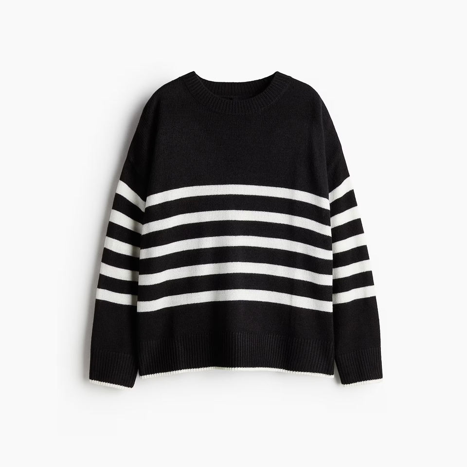 สเวตเตอร์ถักมีลวดลายของผู้หญิงหลากสีสไตล์ลำลองมีโลโก้ด้านหน้ายาวสั้น