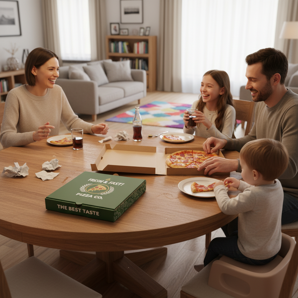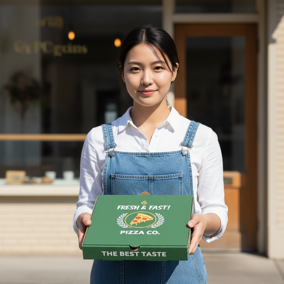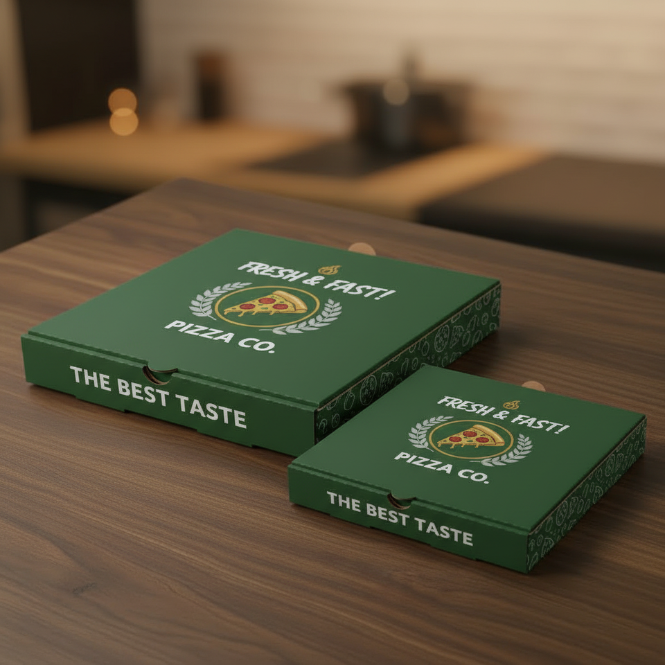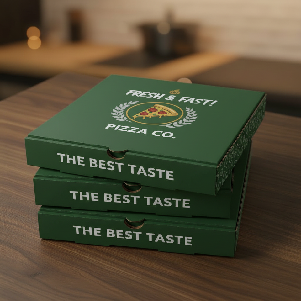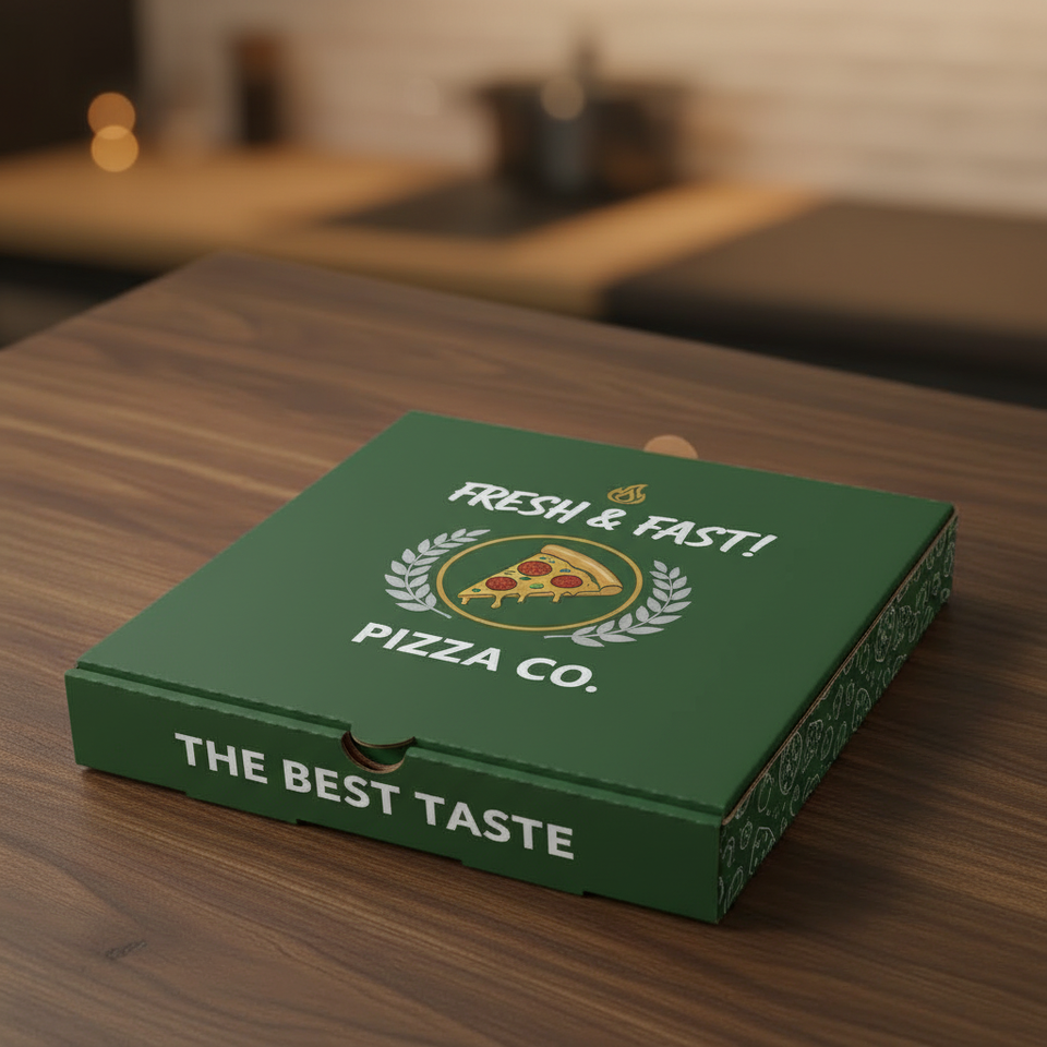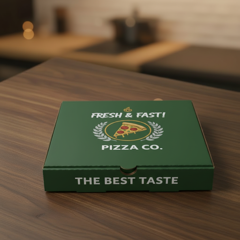 กล่องพิซซ่ากระดาษคราฟท์พิมพ์ลายแบบพรีเมียม เป็นมิตรกับสิ่งแวดล้อม ปลอดภัยสำหรับไมโครเวฟ พร้อมปั๊มร้อน สำหรับร้านอาหารและบริการจัดส่งอาหาร