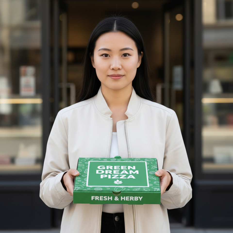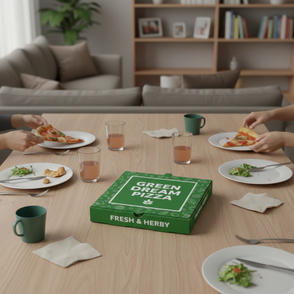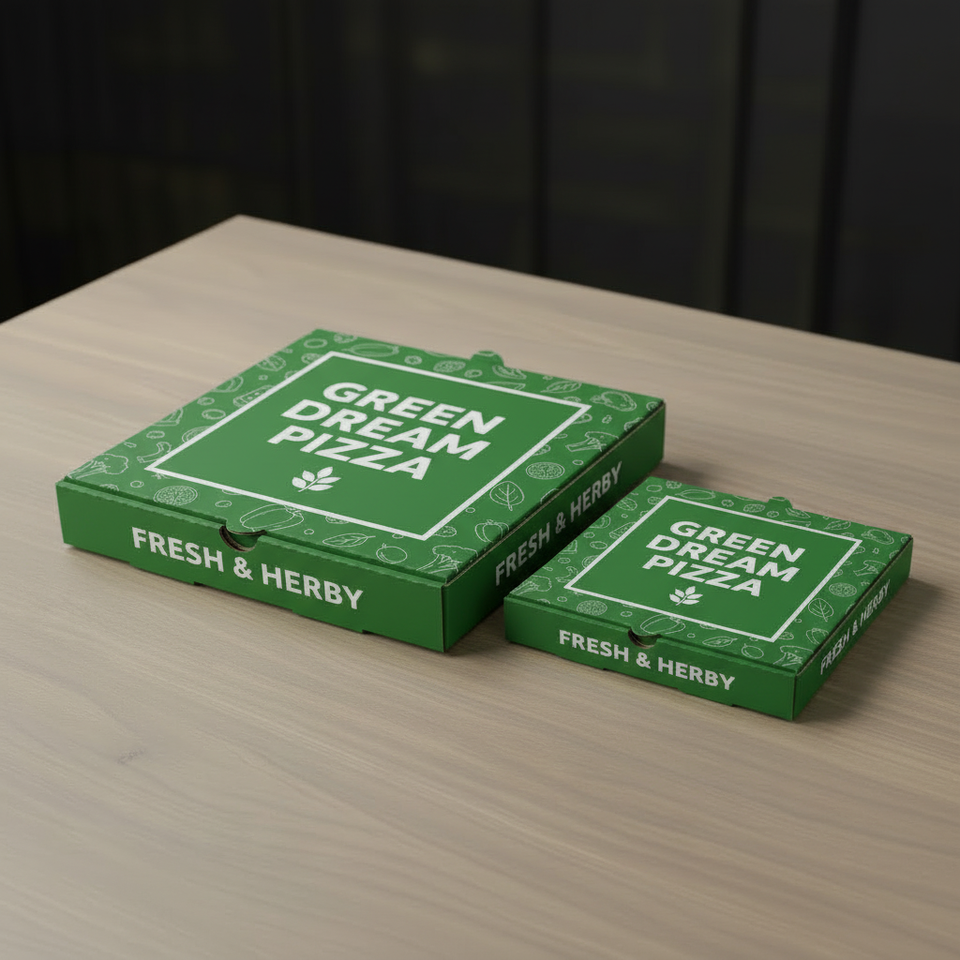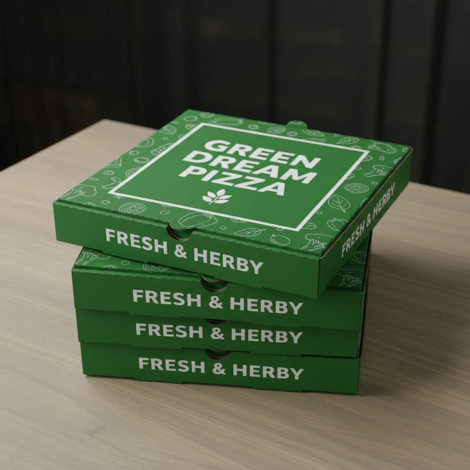 กล่องพิซซ่าพิมพ์ลายพรีเมียมแบบกำหนดเองสำหรับบรรจุภัณฑ์พิซซ่าและอุปกรณ์ร้านอาหารสำหรับส่งอาหาร